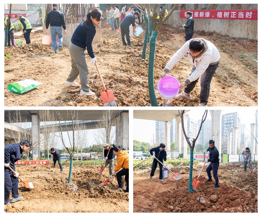 植树现场,干警们热情高涨、干劲十足。大家自发组队、分工协作,挥锹挖坑、扶苗扶正、填土压实、浇水灌溉,各个环节衔接有序、一丝不苟,配合默契。经过一番忙碌,一棵棵新苗迎着春风挺立。
