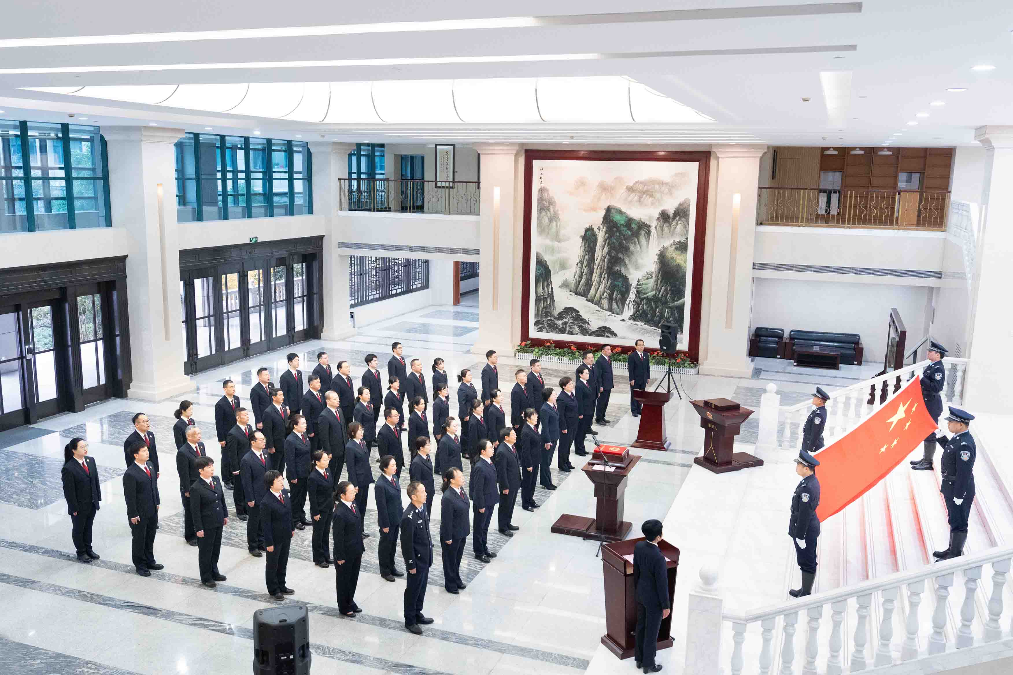 8时40分,中华人民共和国国歌奏响,激昂旋律在大厅久久回荡。在市检察院检委会专职委员魏号国的庄严领誓下,全体宣誓人员面向国旗肃立,高举右拳,郑重宣誓:“忠于《中华人民共和国宪法》,维护宪法权威,履行法定职责……”铿锵誓言响彻大厅,一字一句都是对初心的重温,对使命的铭记。
