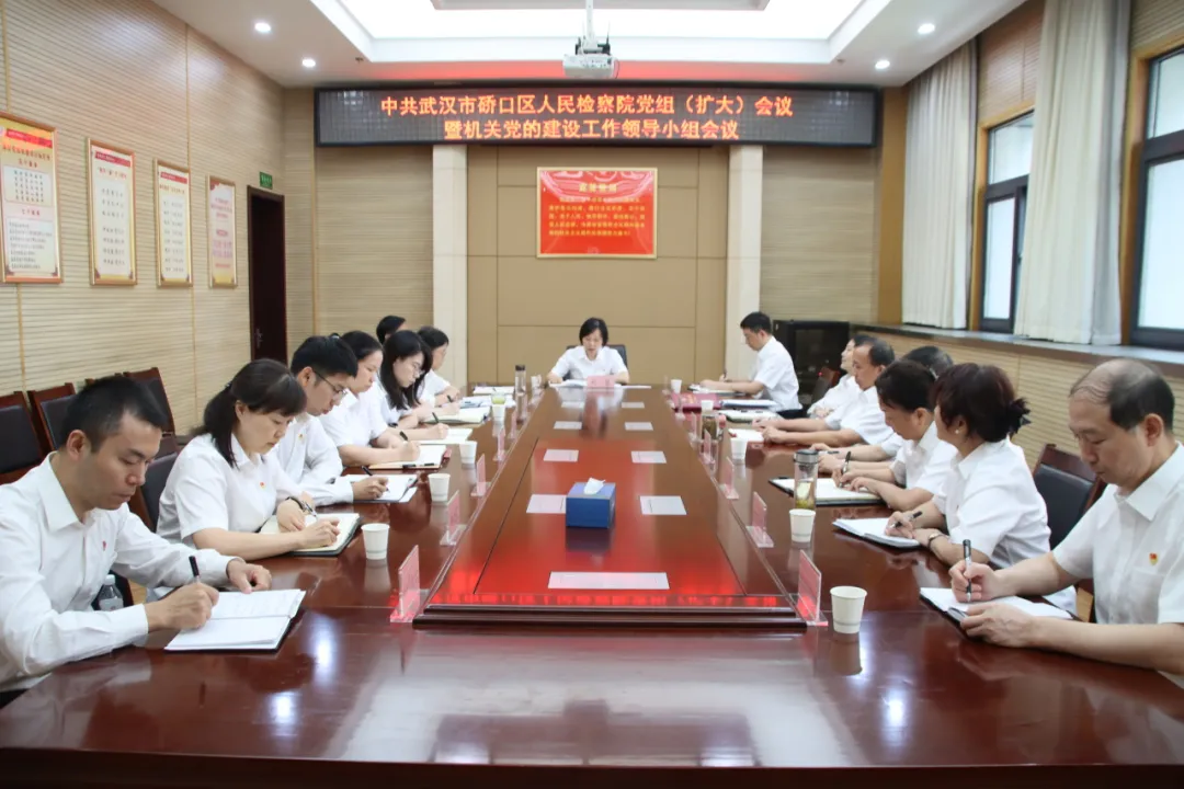 本网讯(通讯员 周廷益)9月15日,硚口区检察院召开党组(扩大)会议暨机关党的建设工作领导小组会议,传达学习习近平总书记关于深入贯彻中央八项规定精神学习教育的重要指示和中央党的建设工作领导小组第16、17次会议及省委、市委、区委党的建设工作领导小组会议精神,全面总结学习教育开展情况,研究部署巩固拓展学习教育成果工作。该院党组书记、检察长刘星主持会议并讲话。