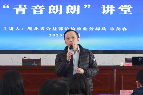 本次活动特邀东湖高新区检察院第二检察部负责人、首届湖北省公益诉讼检察业务标兵宗美容同志担任主讲。蔡甸区院党组成员、代检察长徐江出席活动,党组成员、副检察长郑君致欢迎辞,党组成员、政治部主任袁旻主持活动。武汉市公益诉讼部门青年干警代表、蔡甸区院青年干警参加活动。