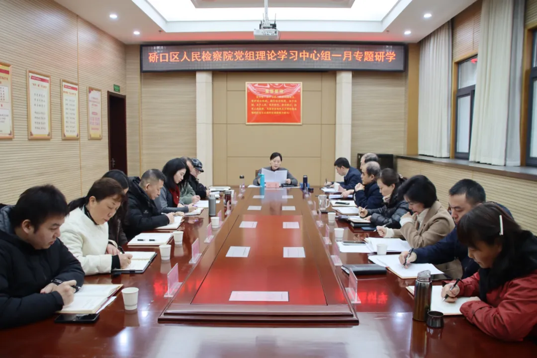会议强调,要坚持党的领导,在深学细悟中扛起法治责任。坚持把学习贯彻习近平新时代中国特色社会主义思想、习近平法治思想作为首要政治任务。严格落实“第一议题”制度,通过党组理论学习中心组学习、支部主题党日活动、“三会一课”等方式,持续深化对党的创新理论的理解把握,不断增强“四个意识”、坚定“四个自信”,持续擦亮坚定拥护“两个确立”、坚决做到“两个维护”的鲜明政治底色。要紧扣中心大局,在依法履职中展现检察作为。以精准定位、高质效履职融入硚口经济社会高质量发展,依法平等保护各类市场主体合法权益,深化开展违规异地执法和趋利性执法司法专项监督,着力营造一流法治化营商环境。加大对核心产业与技术的司法保护力度,护航创新驱动发展。聚焦城区历史文化遗产保护、城市生态系统修复,充分履行检察职能,助力打造城市更新“五改四好”新格局。要坚持守正创新,在深耕主业中不断增强法律监督精准度。回归高质效办案本职本源,树立和践行正确政绩观,促进严格执法、公正司法。要推动“四大检察”全面协调充分发展,持续优化刑事诉讼立案、侦查、审判、执行全流程监督;精准开展民事诉讼监督,不断推动完善民事虚假诉讼防范、发现和惩治机制;深化“府检联动”机制,有力促推法治政府建设;加强公益诉讼检察监督,守护公共利益和美好生活。要加强队伍建设,在从严治检中锻造更硬检察铁军。深化全面从严治检,锲而不舍落实中央八项规定及其实施细则精神。坚决执行新时代政法干警“十个严禁”和防止干预司法“三个规定”,全面准确落实司法责任制,筑牢司法廉洁“防火墙”。构建检察人才“雁阵”格局,巩固拓展“硚楚·精进”青年队伍建设品牌体系,激发青年队伍内生动力。