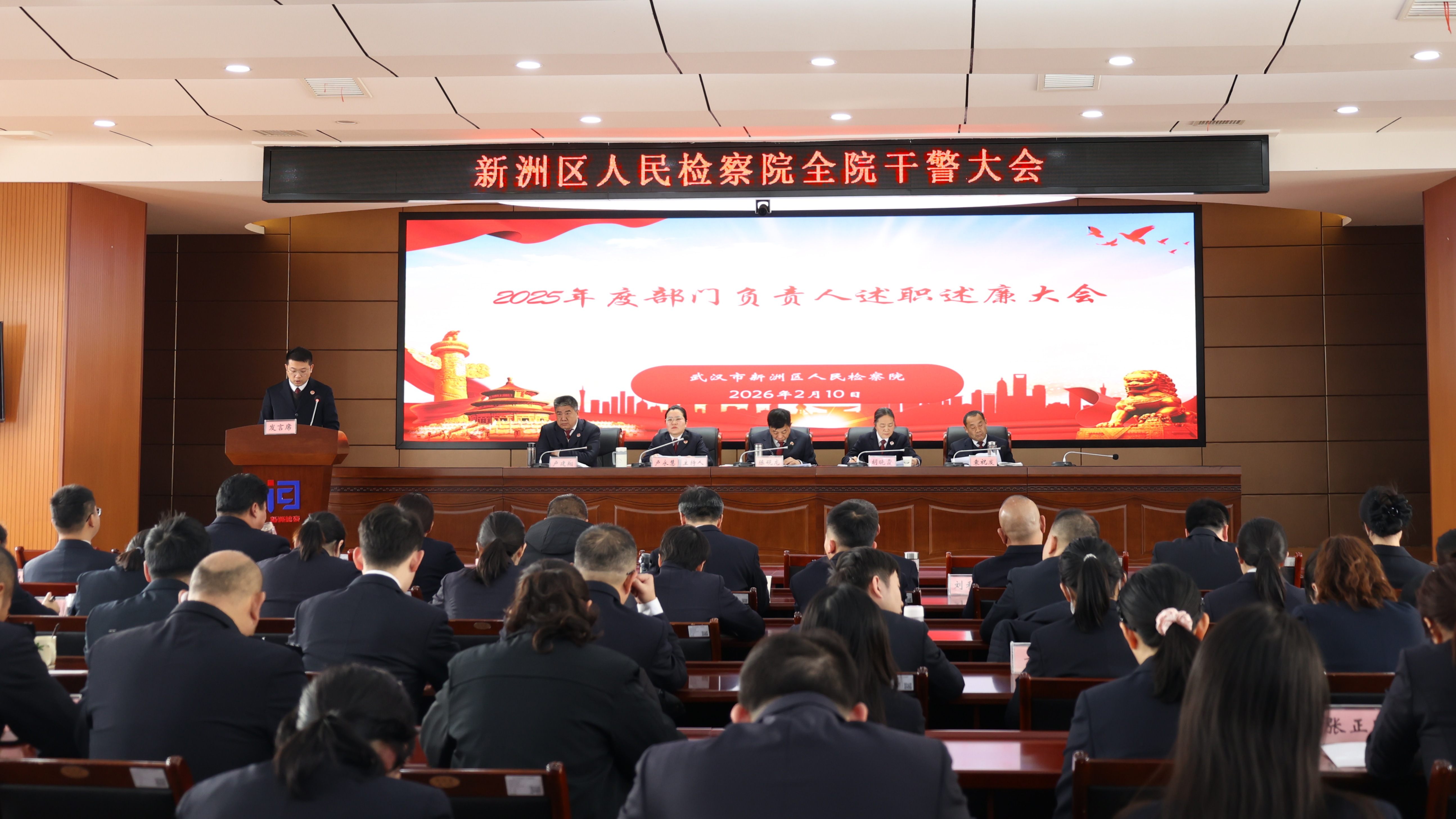 本网讯(通讯员 罗昕)2026年2月10日,新洲区检察院召开2025年度部门负责人述职述廉大会。该院党组书记、检察长陈砚龙出席会议并讲话,会议由院党组成员、政治部主任卢永慧主持,院领导班子成员及全体干警参加会议。
