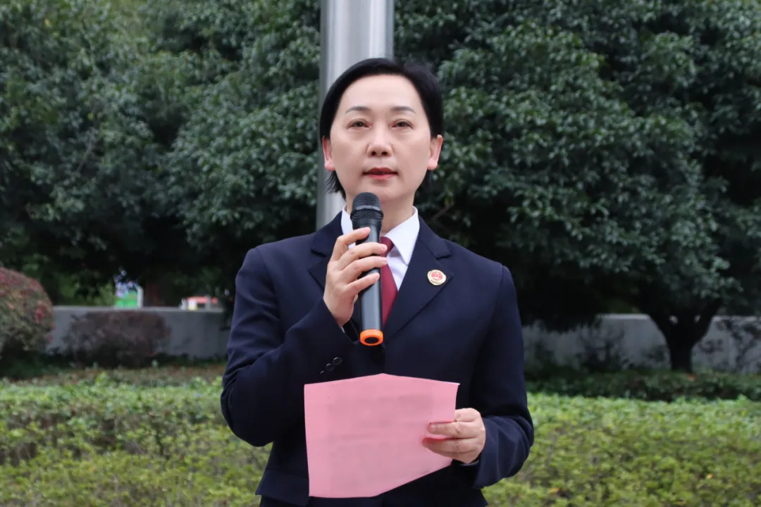 伴随着雄壮激昂的国歌,鲜艳的五星红旗冉冉升起、迎风飘扬。全体干警整齐列队、肃立注目,以昂扬姿态开启新一年检察工作。随后,新进干警代表进行国旗下讲话,以青春之声抒发从检初心,表达了勤学笃行、不负使命的坚定决心,彰显青年检察干警积极向上的精神状态。