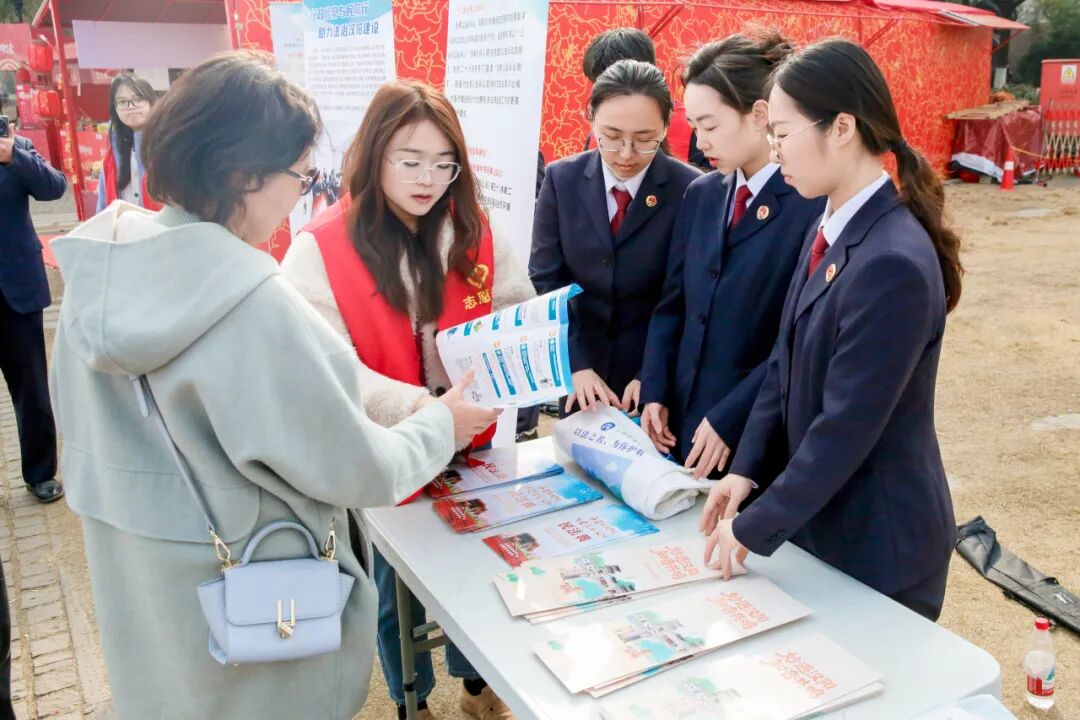 在“长江大保护、文物保护普法角”,她们化身公益讲解员,向过往市民发放宣传手册,用通俗易懂的语言讲解生态保护与文物保护的法律知识。“原来在江边放生也有讲究?”“老宅子的修缮还得按规矩来?”面对群众的好奇,干警们一一解答,让法治“干货”随着春风,悄然吹进游览者的心田。她们的身影,成为古城春日里一道亮眼的法治风景线。