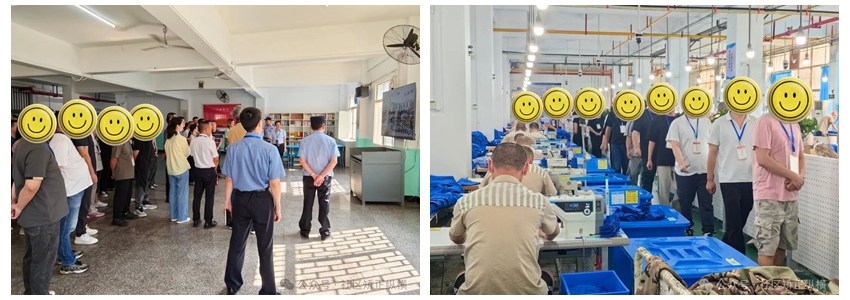 在经过严格的人数清点、禁带物品清理等安全检查后,社区矫正对象在监狱民警的引导下,参观了监狱服刑人员的日常工作生产车间、新入监人员队列训练场、在监人员生活学习场所,了解服刑人员在监狱内生产、生活及学习情况,观看了由100名服刑人员参与表演的《百人合唱 感恩的心》专题片,并聆听了监狱民警对服刑人员有关管理措施和规章制度的介绍。