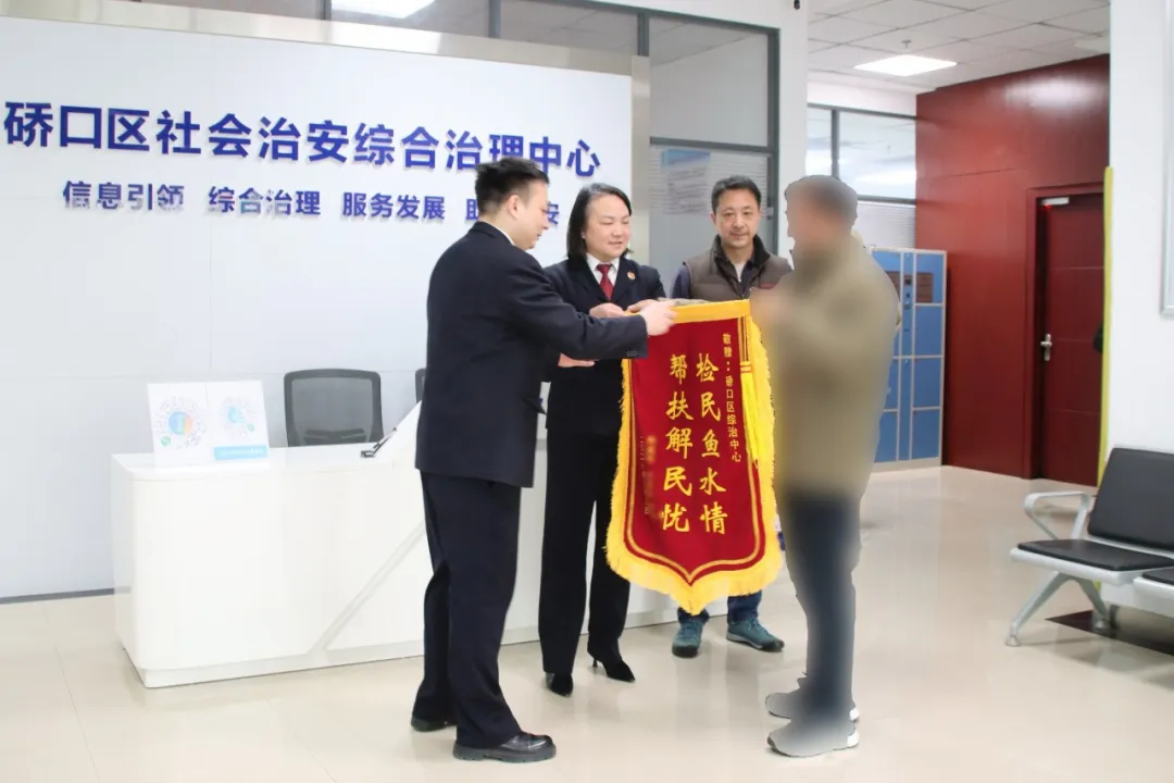 本网讯(通讯员 崔雅倩)寒风凛冽的冬日,硚口区综治中心却洋溢着别样的温暖。一对中年夫妻脚步匆匆又带着几分蹒跚,手中紧紧攥着一面鲜艳的锦旗,锦旗上“检民鱼水情,帮扶解民忧”几个大字在阳光下熠熠生辉,仿佛在诉说着一段不平凡的温暖故事。